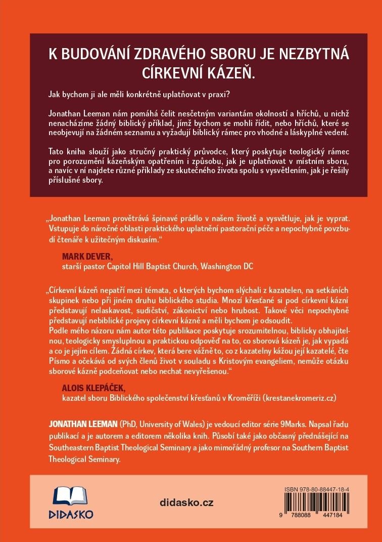 Táto kniha je praktickým sprievodcom, ktorý poskytuje teologický rámec pre pochopenie opatrení výchovnej disciplíny a spôsobu ako ich uplatňovať v miestnom zbore. Sú v nej aj skutočné príklady zo života spolu s vysvetlením, ako ich zbory riešili.