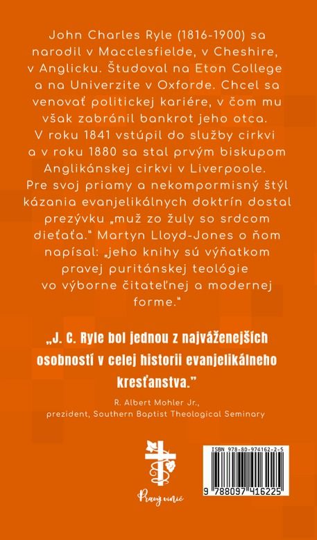 John Charles Ryle bol anglický anglikánsky biskup, kazateľ a teológ (1816-1900). Vyštudoval na Oxfordskej univerzite a pripravoval sa na politickú kariéru, no po bankrote rodiny sa rozhodol vstúpiť do duchovnej služby. Vynikal jasným, priamym štýlom kázania a písania, zrozumiteľným aj bežným ľuďom. Bol silným obhajcom biblickej pravovernosti a protestantských zásad. V roku 1880 sa stal prvým biskupom Liverpoolu, kde pôsobil až do svojho odchodu do dôchodku v roku 1900. Presadzoval dôraz na osobnú svätosť, modlitbu, čítanie Písma a praktický kresťanský život. Medzi jeho najznámejšie diela patrí kniha Holiness (Svätosť), ktorá ovplyvnila mnohých veriacich. Bol aj ostrým kritikom liberalizmu v cirkvi a vždy stál pevne na autorite Biblie. Je považovaný za jednu z najváženejších osobností v celej histórii evanjelikálneho kresťanstva.